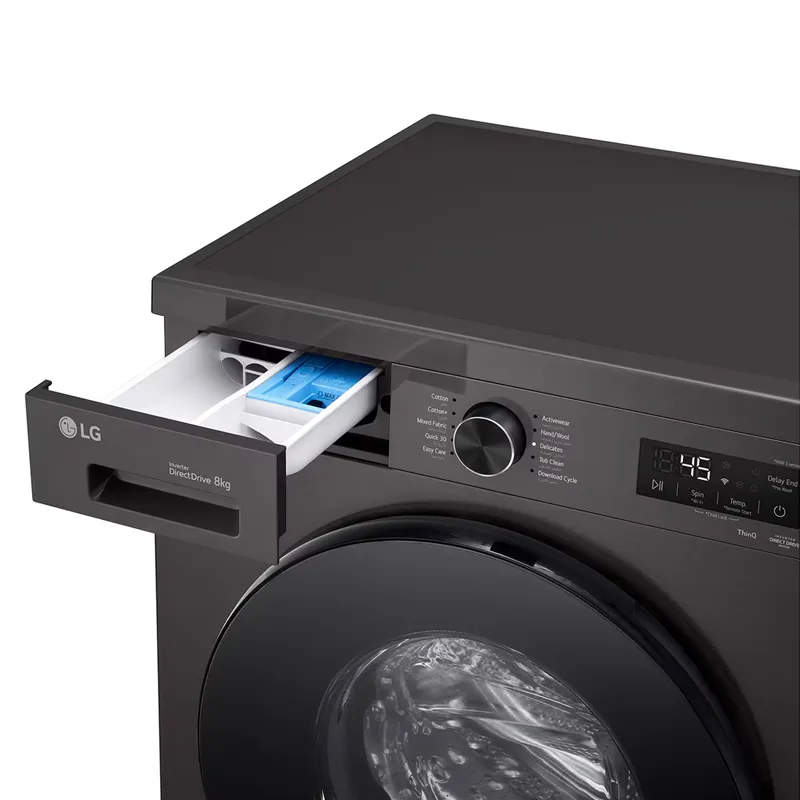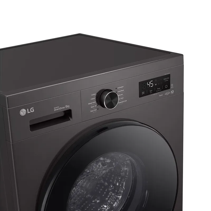 غسالة ملابس إل جي، 8 كجم، 1400 لفة/دقيقة، واي فاي، لون أسود بلاتينيوم – F4Y2TYGYZ