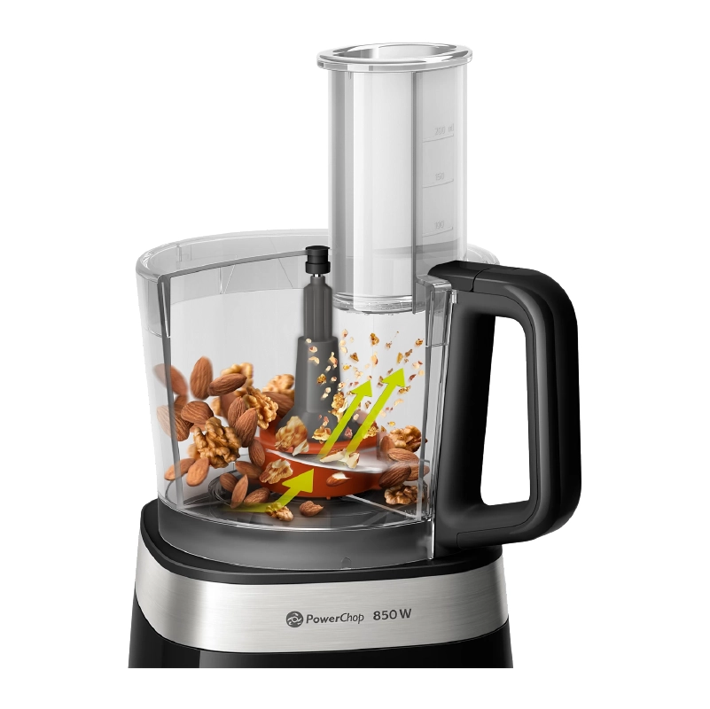 تجمع تقنية PowerChop بين شكل الشفرات والزاوية الحادة والوعاء الداخلي فتؤمّن نتائج تقطيع مثالية للمكونات الطرية والقاسية على حد سواء. بالإضافة إلى ذلك، إنها مثالية لتحضير الطعام المهروس وخفق مزيج عجين قوالب الحلوى!