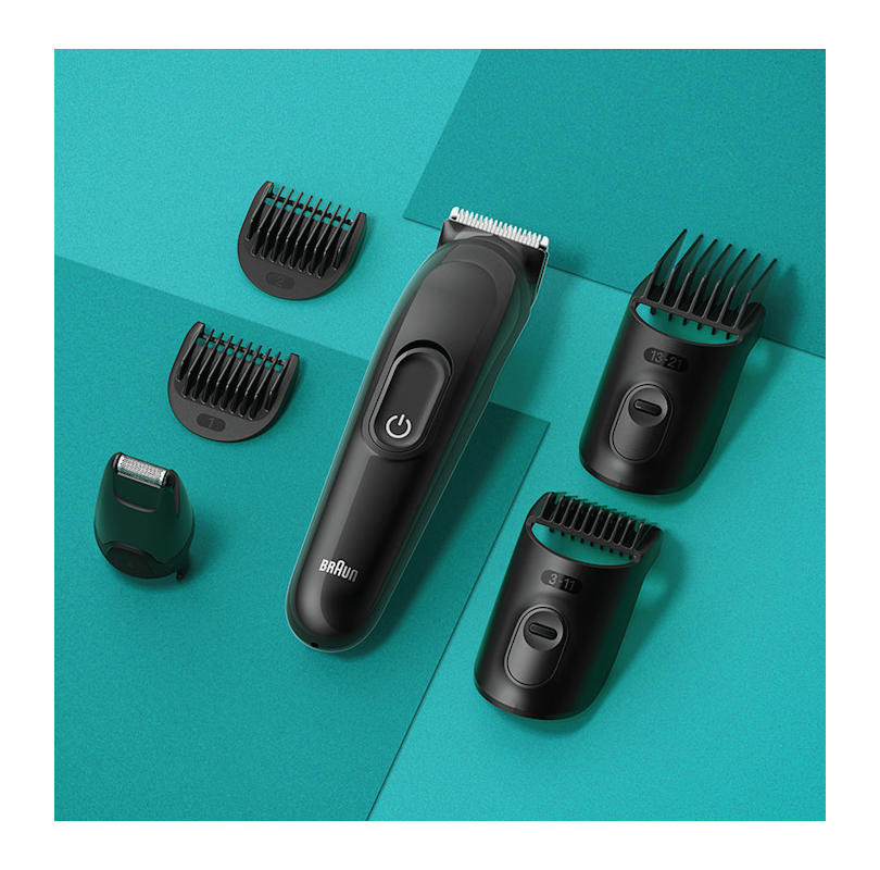 - مجموعة تصفيف 6 في 1 من براون للعناية بالوجه واللحية: أدوات منسقة لقص اللحية والحلاقة الدقيقة وقص الشعر في المنزل.