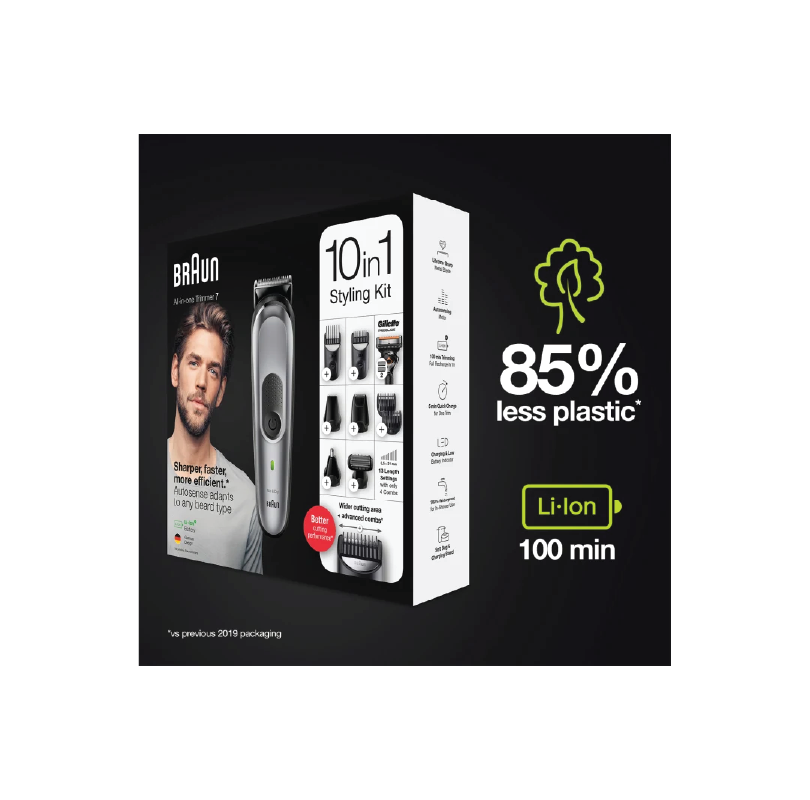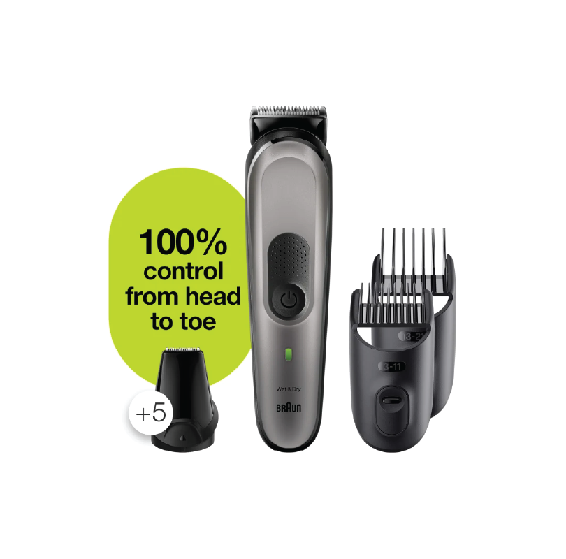 - تحكم كامل 100% من الرأس لأطراف الأصابع:محرك بتقنية AutoSense ومشط دقيق يحتوي على بلاستيك أقل بنسبة 20% بما يتيح تشذيبًا أيسر بمجهود أقل – أكان للشارب أم السكسوكة أم لحية خفيفة أم شعر الجسم.