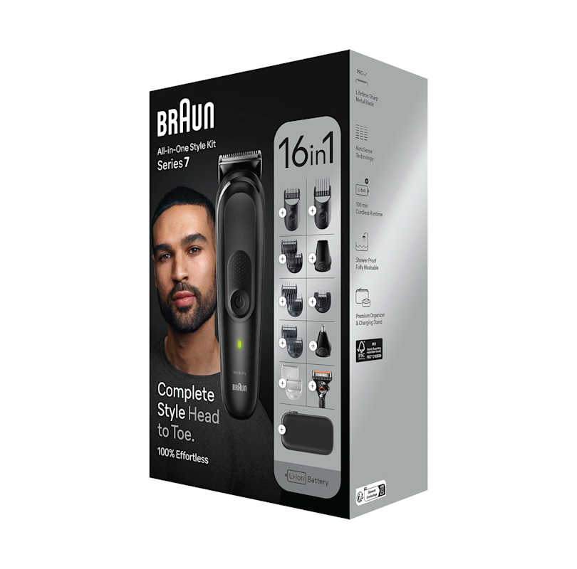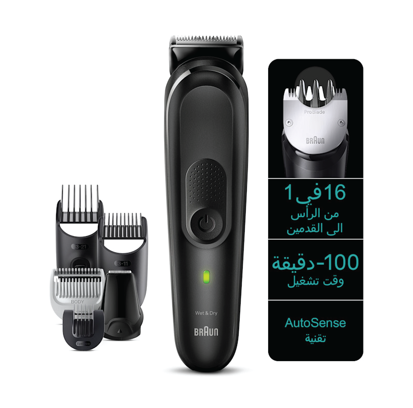- مجموعة تصفيف 16 في 1 من براون للعناية بالشعر من الرأس إلى القدمين: أدوات منسقة لتهذيب اللحية والأذن والأنف وقص الشعر وحلاقة الجسم بالكامل.